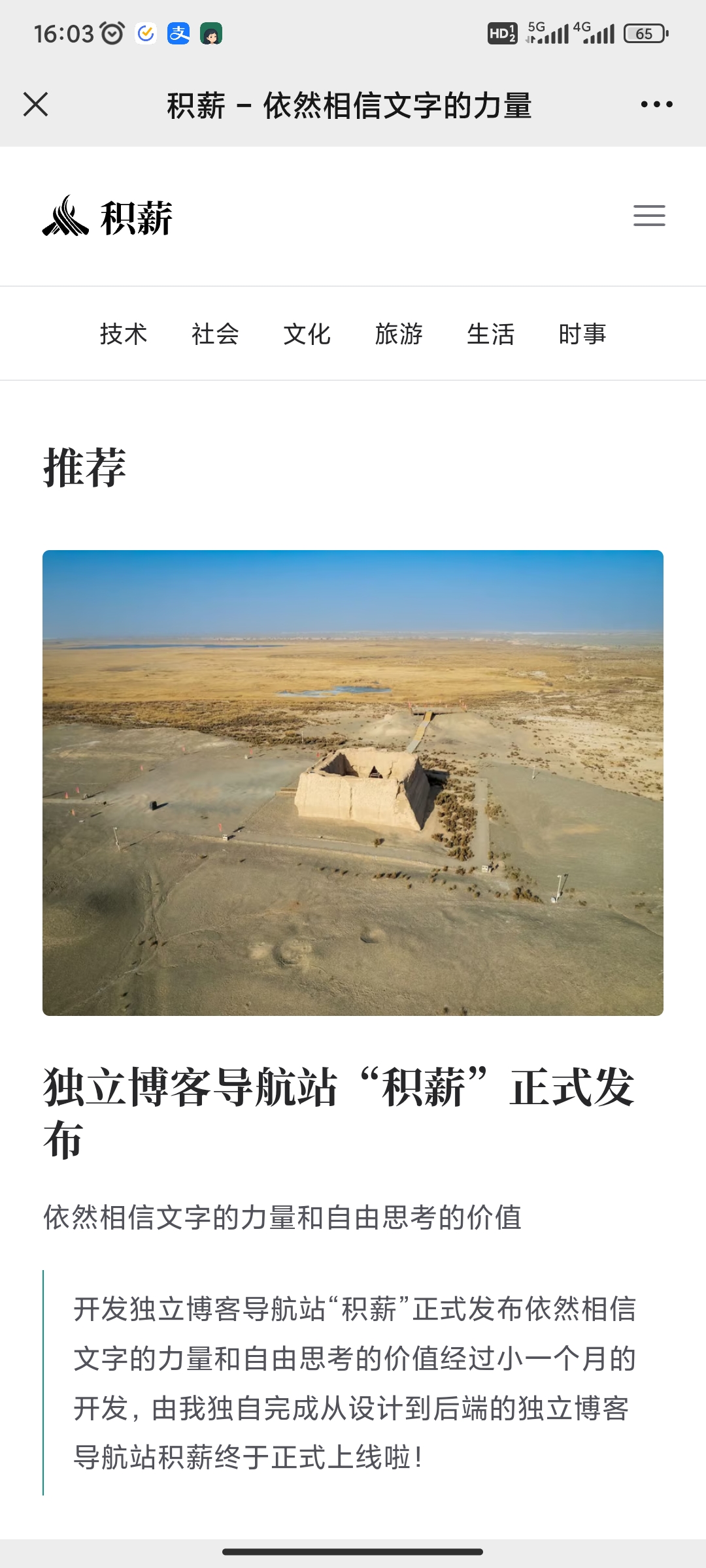 张张3 years ago独立博客导航站“积薪”正式发布网站推荐: https://firewood.news/about ,致敬那些还在写博客的人,独立博客导航站“积薪”正式发布 107 views1Share