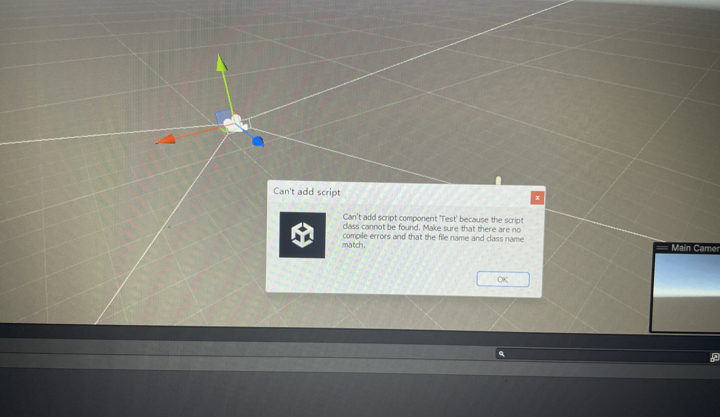 在unity中,拖动脚本到main camera对象的视图出现错误怎么办。
