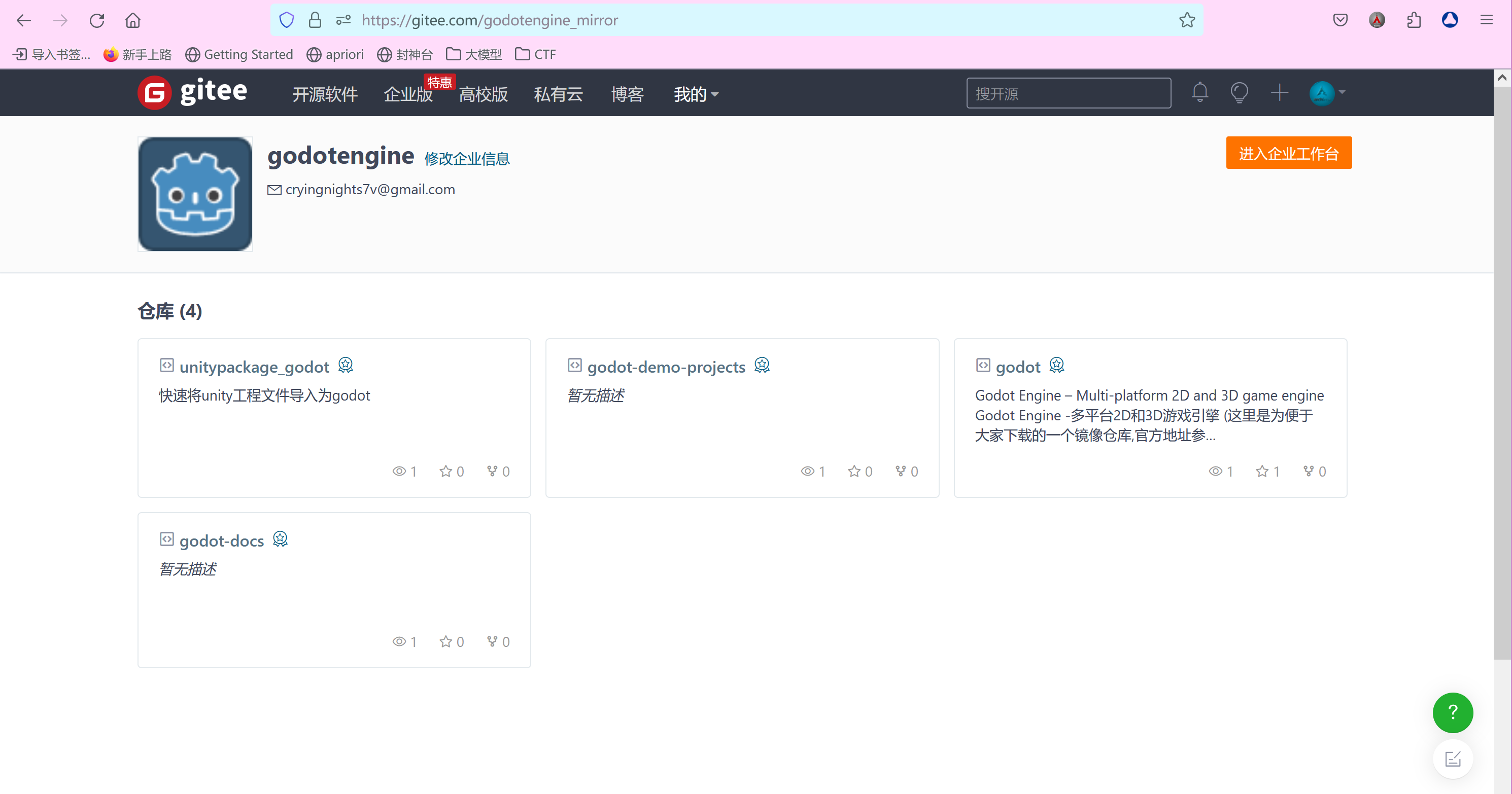 为了让国内用户更方便地切换godot引擎进行继续开发,我们在gitee上传了仓库: